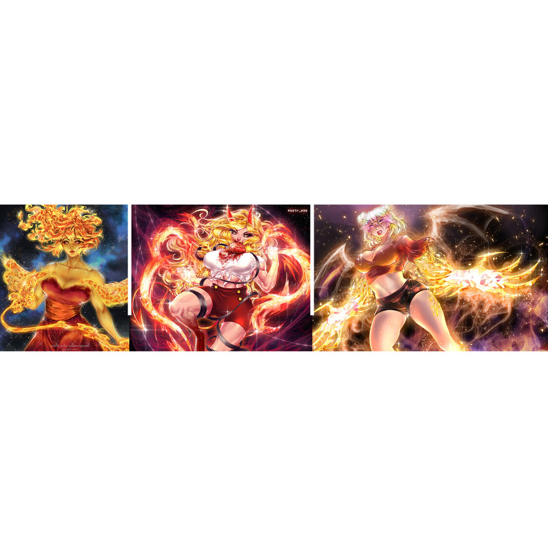 Fully Rendered Waist-up and Thigh-ups with elemental/power effects.
